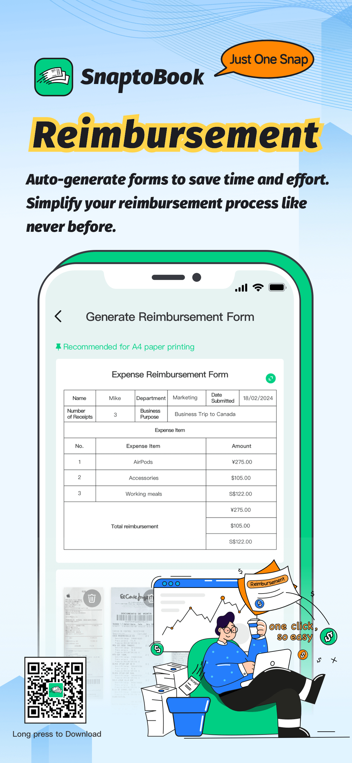 Auto-generate reimbursement forms to save your time and effort, and securely store them in the cloud.