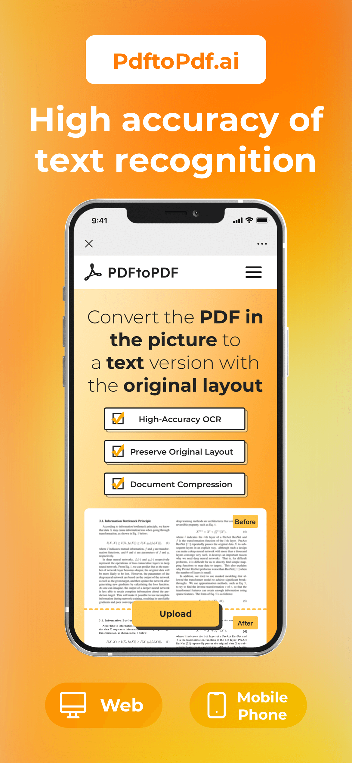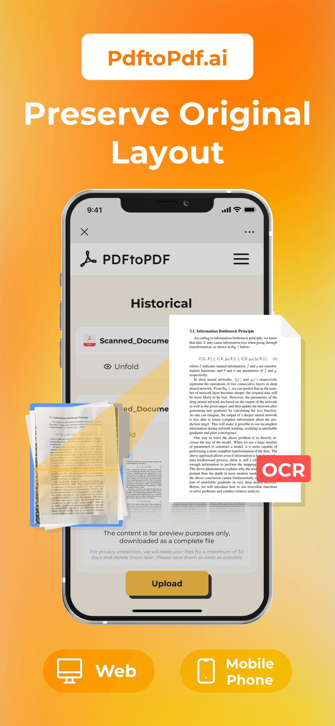 Preserve the format of your PDF wtih our online format conversion tool, saving you time from tedious editing.
