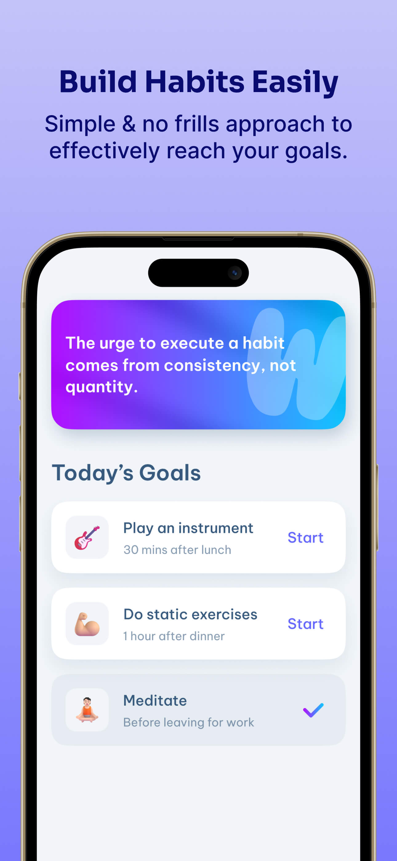 Enjoy a clean interface that keeps you focused on your goals and building lasting habits。