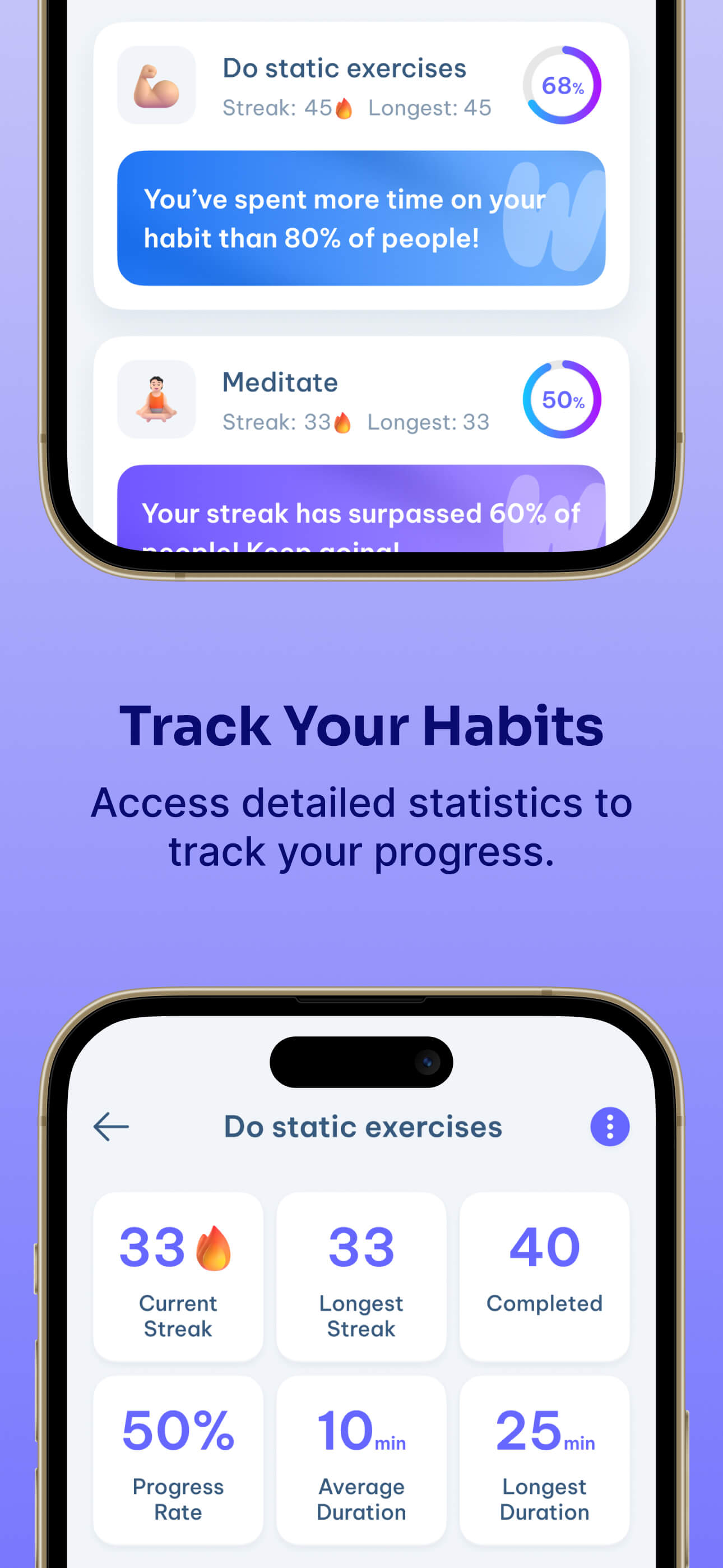 Monitor your growth with detailed history and statistics. Celebrate your milestones and build a better you.